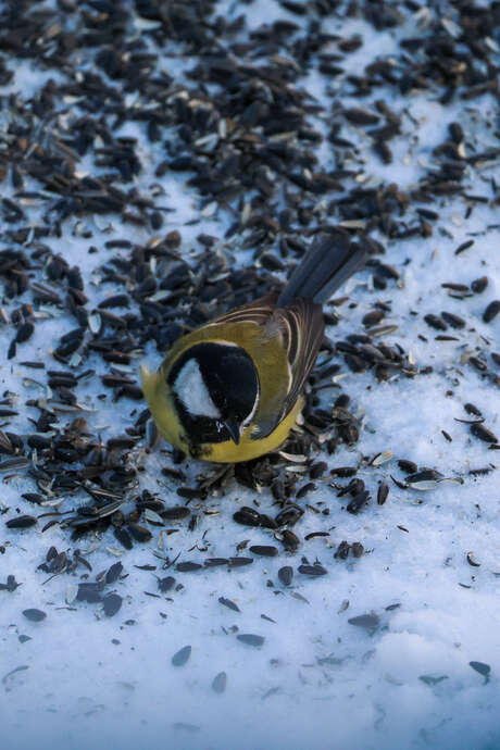Одна большая синица живет под зданием возле трубопровода теплоснабжения, кормится вместе с домовыми воробьями семенами подсолнечника, от места далеко не улетает. Появилась в октябре с наступлением отрицательных температур. Тазовский район Ямало-Ненецкого автономного округа несвойственное место обитания больших синиц, в пос. Новозаполярный в 2024 году не наблюдал ни одной синицы. Сейчас в поселке зимуют еще как минимум 2 особи, кормятся также вместе с домовыми воробьями.